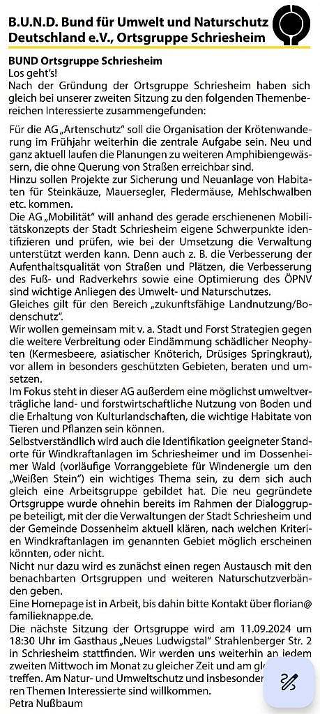 P.S.: Die Zahlen für den Holzeinschlag haben wir wie folgt berechnet: Laut Waldhaushaltsbericht 2023 für Dossenheim sollen im Dossenheimer Wald 4000 Festmeter Holz geschlagen werden. Auf einem Hektar befinden sich ca. 600 Festmeter (bei völliger Rodung; je nach Baumart sind das zwischen 100 und 400 Bäume), dies entspricht somit sieben Hektar. Für die Gemeinden Schriesheim und Heidelberg liegt kein entsprechender Bericht vor, wir haben daher die Zahlen für Dossenheim auf die Waldflächen von Schriesheim und Heidelberg hochgerechnet.