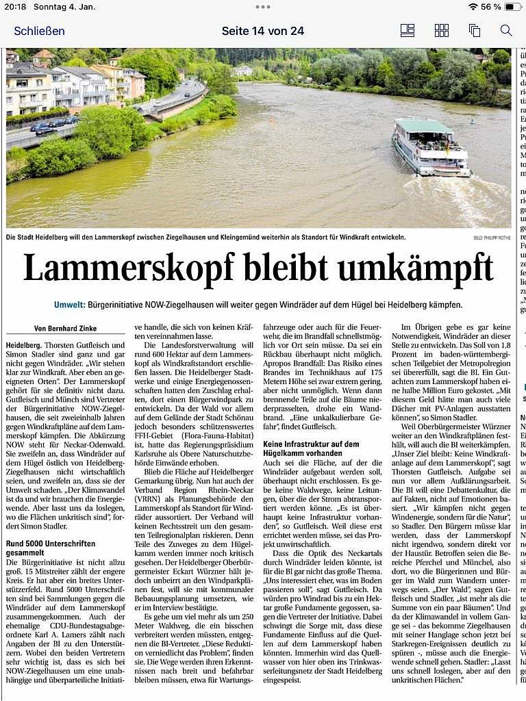 Bürgerinitiative NOW Ziegelhausen will weiter gegen Windräder auf dem Hügel bei Heidelberg kämpfen