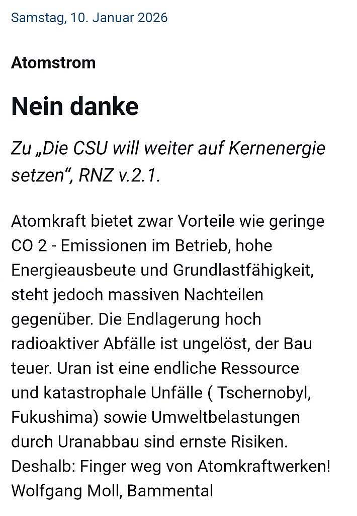 Währenddessen stagniert in Frankreich der Ausbau erneuerbarer Energien. Nur etwa ein Viertel des Stroms stammt aus Wind und Sonne, trotz günstiger natürlicher Voraussetzungen. Politische Widerstände bremsen den Ausbau zusätzlich. Zum Vergleich: Deutschland deckte 2025 rund 56 Prozent seines Stromverbrauchs aus erneuerbaren Quellen und ist weniger abhängig von einzelnen Großkraftwerken.