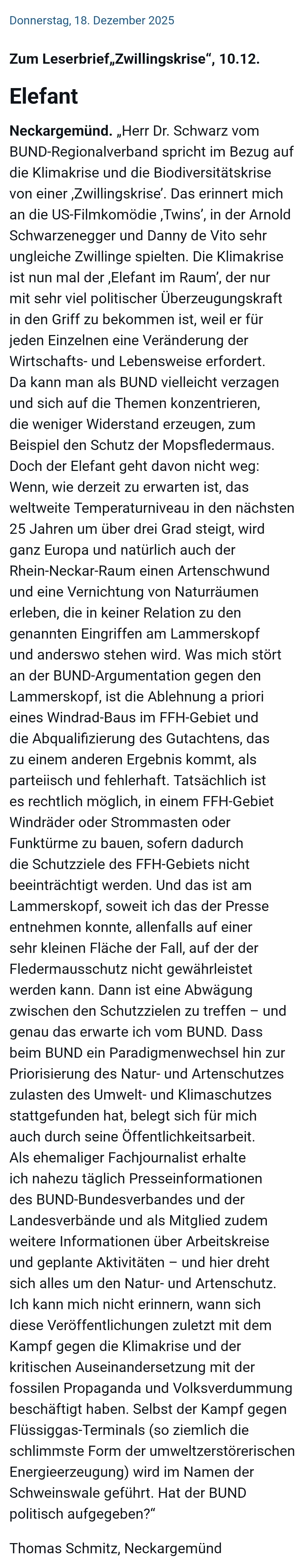 Antwort auf Leserbrief “Zwillingskrise” zur Haltung des BUND zum Lammerskopf