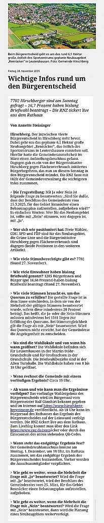 Es bleibt zu hoffen, dass alle Schriesheimer und Dossenheimer Bürger:innen sich vor dem Bürgerentscheid ausgewogen informieren, um sich nicht von den zahlreichen und ständig wiederholten Gerüchten und Falschinformationen zum Thema Windenergie in die Irre führen zu lassen. Diese sind auch der Grund dafür, dass wir das Bürgerbegehren abgelehnt hatten. Wenn es aber nun zum Bürgerentscheid kommt, beteiligen Sie sich zahlreich und lassen ihn zu einem starken Signal für Klimaschutz und Windkraft werden!