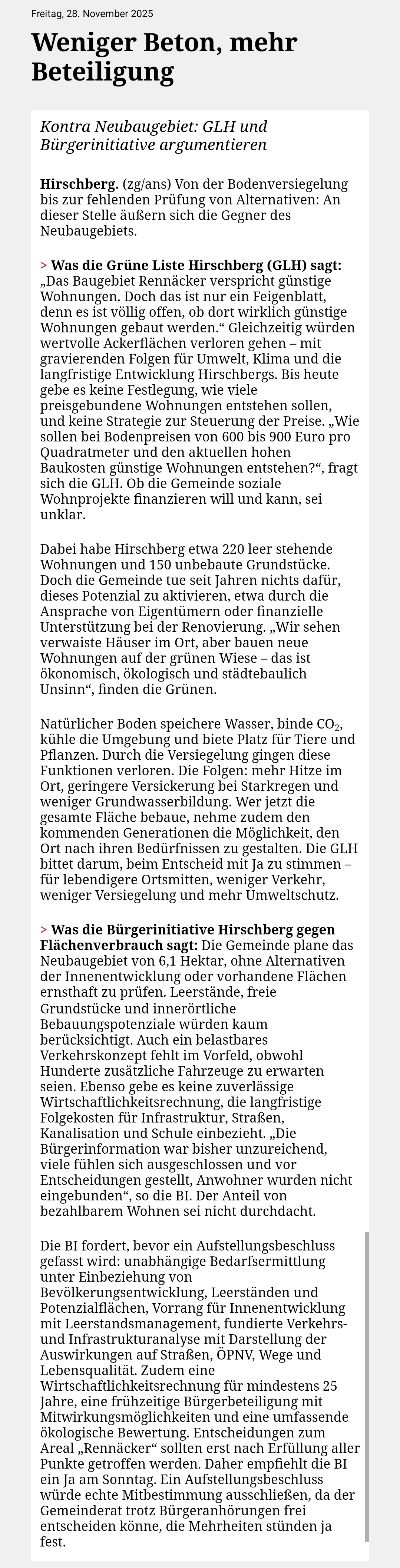 Zudem betrifft das haushalterische Defizit des Forstbetriebsplans 2025 281.885 €. Somit kann auch hier in keiner Weise von einer kommerziellen Forstwirtschaft ausgegangen werden. Dies wird u.a. auch damit begründet, dass in diesem Jahr die Ausgleichsmaßnahmen für das neue Gewerbegebiet anstehen.