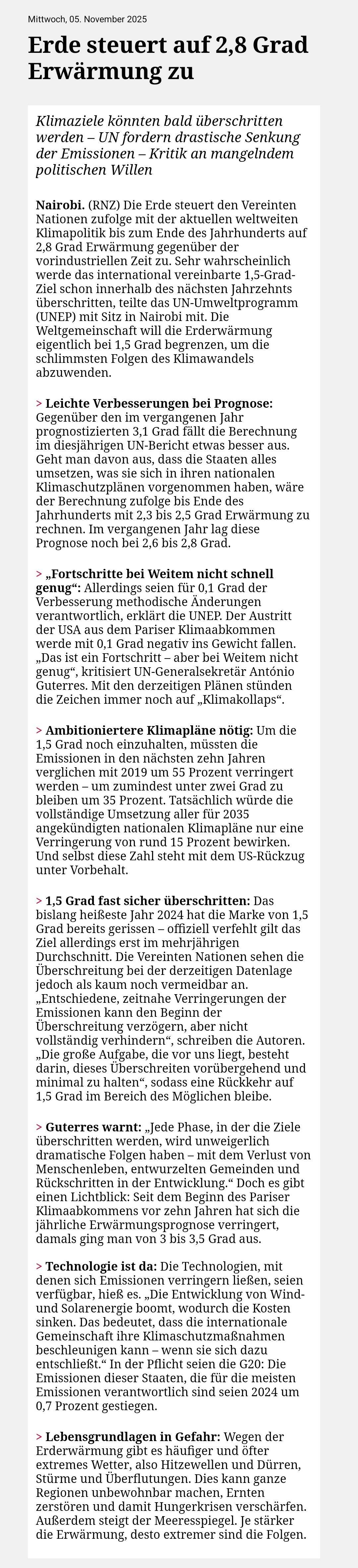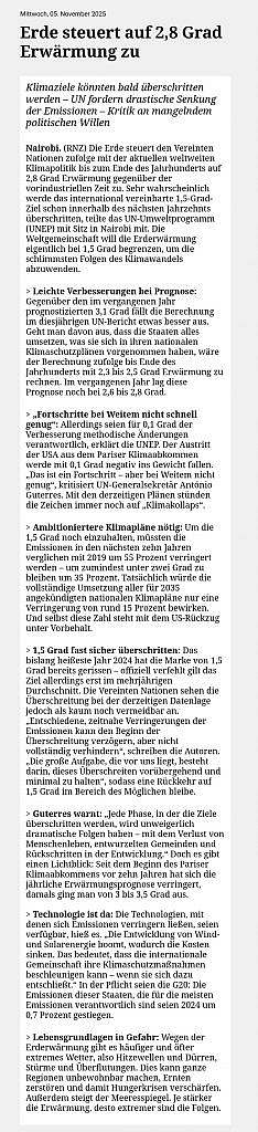 Klimaziele könnten bald überschritten werden – UN fordert drastische Senkung der Emissionen – Kritik an mangelndem politischen Willen