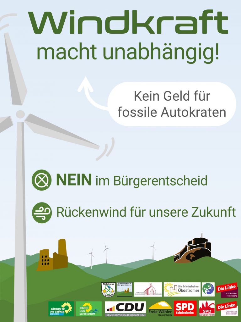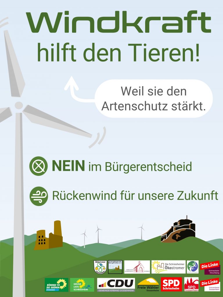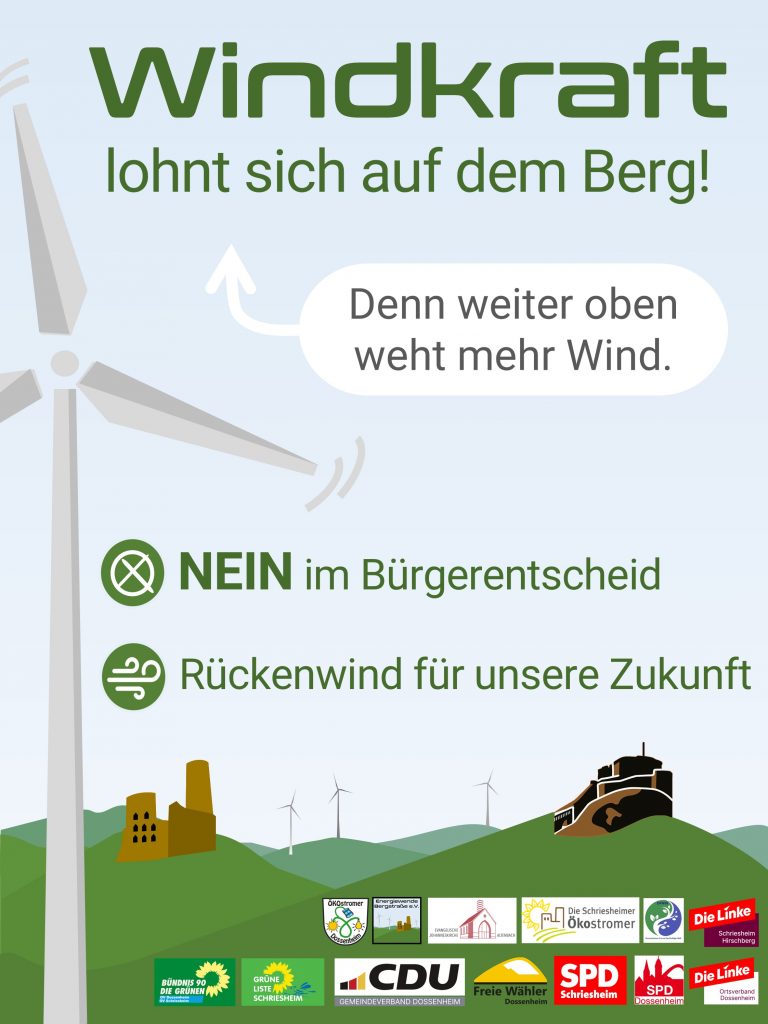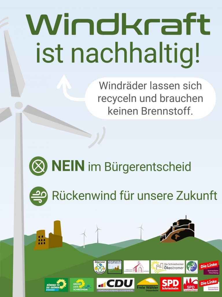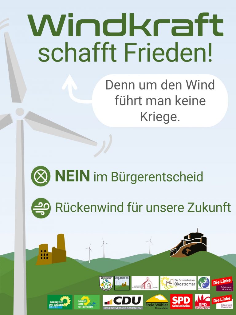Natürlich kann nicht jeder Ort in Deutschland Windräder bauen – In Dossenheim und Schriesheim aber haben wir die Chance, mit lokalen Windrädern vor Ort selbst etwas zu tun. Deshalb ist es fair und verantwortungsvoll, dass auch wir unseren Teil beitragen. Denn wenn alle nur auf die anderen zeigen, wird sich nichts ändern. Verantwortung bedeutet: Nicht zu warten, bis andere handeln – sondern selbst den ersten Schritt zu tun.
