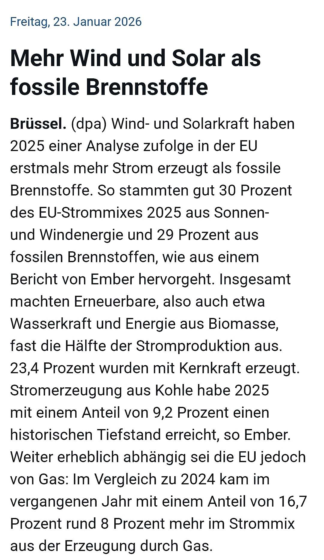 Mehr Strom aus Wind und Solar als aus fossilen Brennstoffen