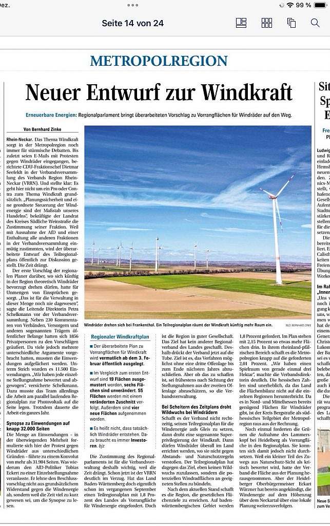 Regionalparlament bringt überarbeiteten Vorschlag zu Vorrangflächen für Windräder auf den Weg