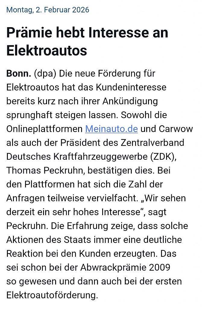 • Prämie hebt Interesse an Elektroautos