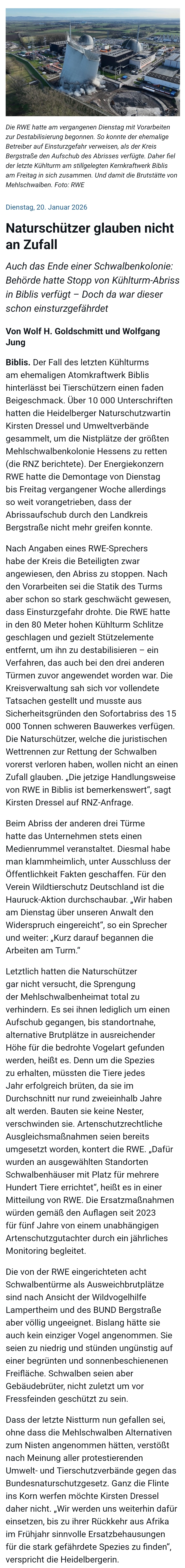 Auch das Ende der Schwalbenkolonie in Biblis: Behörde hatte Stopp von Kühlturm-Abriss verfügt – Doch da war dieser schon einsturzgefährdet